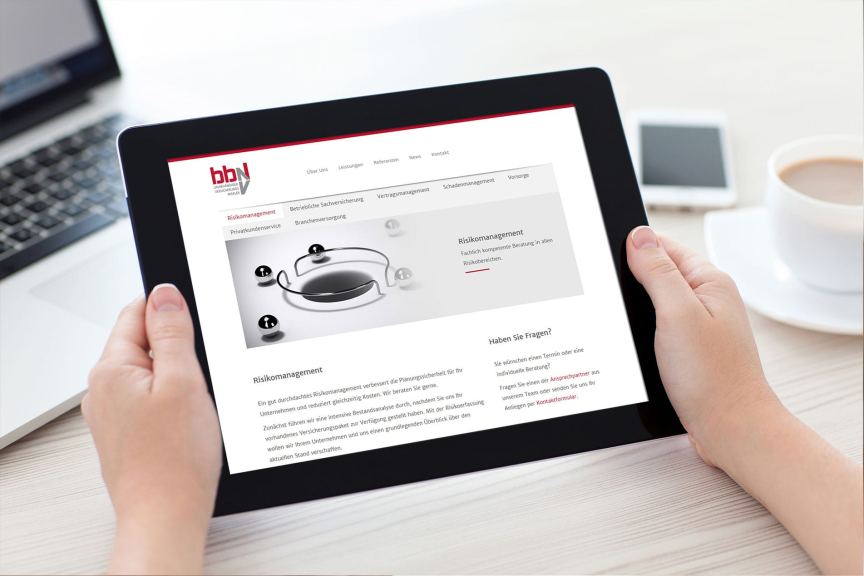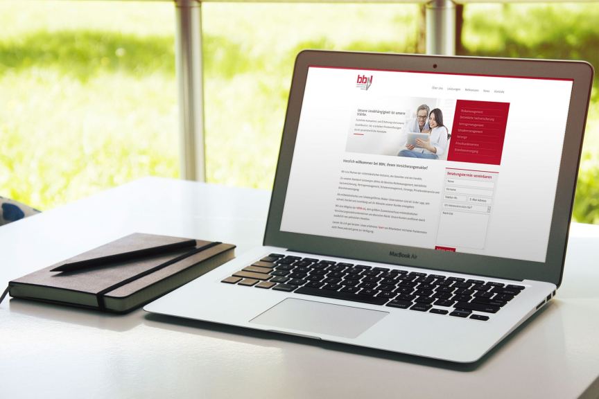 Klare Strukturen sorgen für ein seriöses Auftreten. Die neu entwickelte Corporate Identity der BBN Versicherungsmakler besticht optisch durch ein branchennahes Design. Übersichtliche Strukturen und dezente Farbakzente werden im Logo, auf der Website sowie bei der Umsetzung der Geschäftsausstattung aufgegriffen.