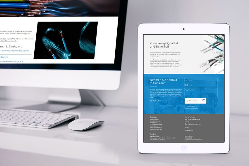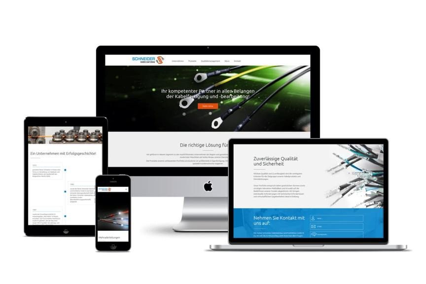 Mit einer Rundumauffrischung verpassen wir unserem langjährigen Kunden Schneider Kabelsatzbau einen neuen Look. Die neue Corporate Identity und ein Websiterelaunch sorgen für eine zeitgemäße Leistungspräsentation. Visuell unterstützende Designelemente und hochwertige Detailaufnahmen gehören zum individuellen Designkonzept für das Unternehmen.